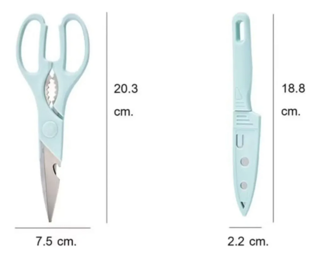 - Tesoura multiuso: prática para cortar ervas, embalagens e alimentos.